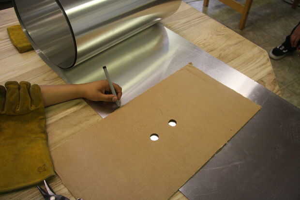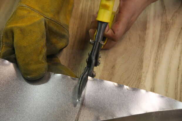 Una vez que usted trace uso las tijeras o lata tijeras de hojalatero para cortar hacia fuera.