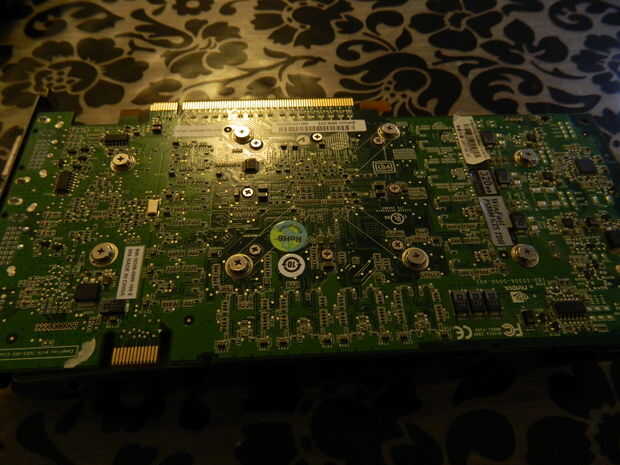 En este caso el componente defectuoso es el gran golpe gris en medio de la tarjeta. Este es el procesador gráfico y debajo de él es cientos de puntos de soldadura pequeño. Algunos de estos puntos se rompen debido a un calor causado por una disipación de calor mal qué es causada principalmente por una pasta termal pobre y seca o un ventilador lleno de polvo. O ambos.