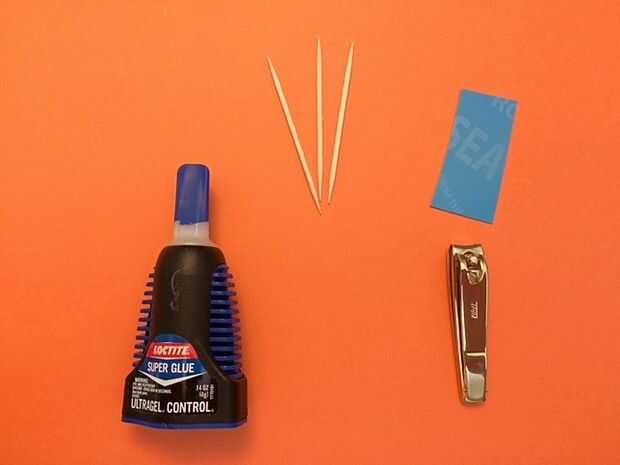 1. Corte una pequeña sección de la tapa de plástico. Esto se utilizará para untar el pegamento en la uña - como una escobilla de goma.