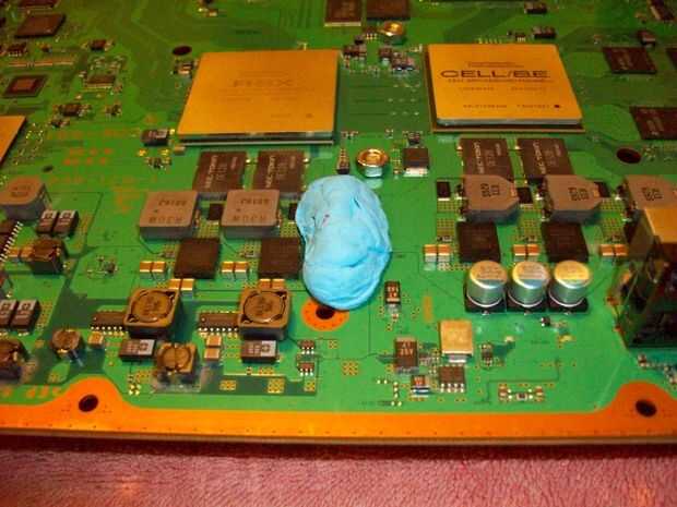 Esto completa el aislamiento y un paso final antes de volver a fluir - que funde las hojas. El flujo vuelve a las condiciones de las bolas de la soldadura y les devuelve su flexibilidad y fortaleza. Necesita un tipo muy específico - No Clean. Este material no se necesita limpiar apagado al tablero como otros tipos de flujo (que comen en los pads de soldadura para la soldadura "stick") y es muy delicuescentes. El tipo de elección es Kester 951, que puede ser tenido en eBay en pequeñas botellas. Sólo tienes que buscar "flujo YLOD" y lo encontrarás. Para ello, básicamente tomar la pipeta y chorros de flujo de las fichas que desea reflujo. Ahora, en realidad cada parte de la Junta será adaptarse, pero sólo necesitamos flujo de las piezas que se han fatigado y falló, causando el YLOD. He esbozado estos chips específicos en rojo en dos de las imágenes.