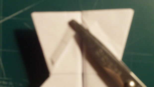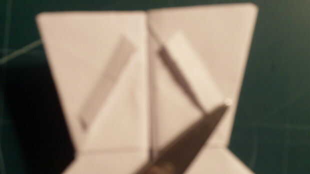 2.) para hacer spoilerons, haces pequeños cortes en una superficie por encima del ala. En el martillo, el lugar para esto es en los canards. Aquí cortan aproximadamente una pulgada a través de cada uno. A continuación, doblar y ajustar.