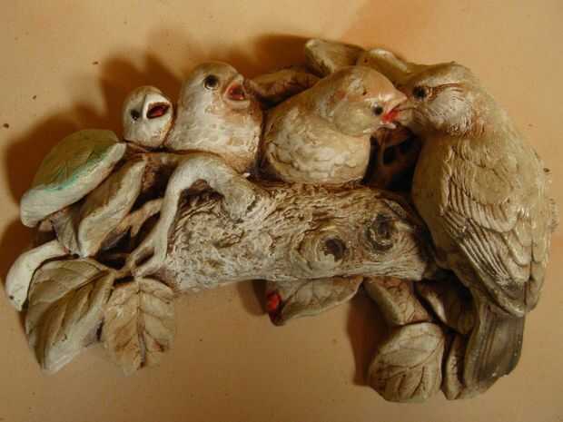 Me encontré con esta obra de Arte 'un ave madre alimentar a sus polluelos en una rama de árbol' y quería hacer una copia de la. Así que tomé prestado de la pieza, hizo un molde de caucho de silicón y utilizando ese molde había fundido en concreto.