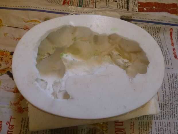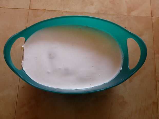 - Después de 24 horas, tocar ligeramente la superficie de la mezcla de silicona. Si pega a los dedos, darle más tiempo para curar. Como la cantidad de mezcla es más, tomó unas 48 horas en mi caso.