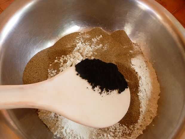 • Añadir una cuchara de mesa con base de pigmento del color a la mezcla seca. He utilizado pigmento de color negro aquí.