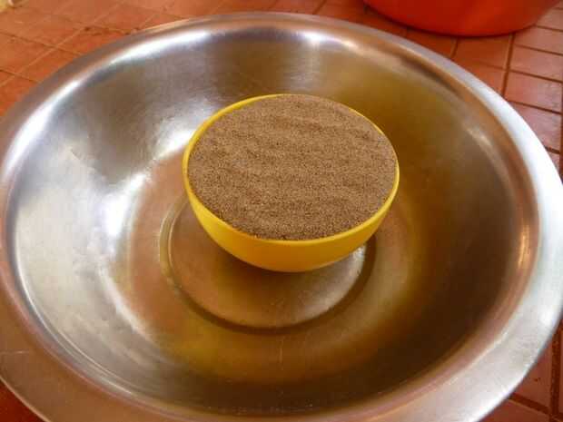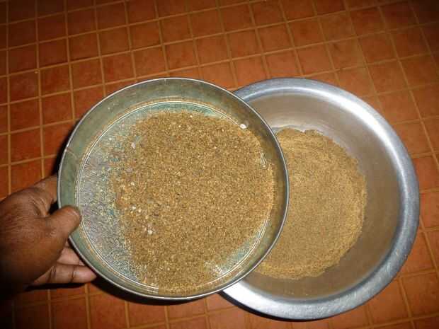• Tamiz de la cantidad necesaria de arena con un colador fino para eliminar las partículas más gruesas.