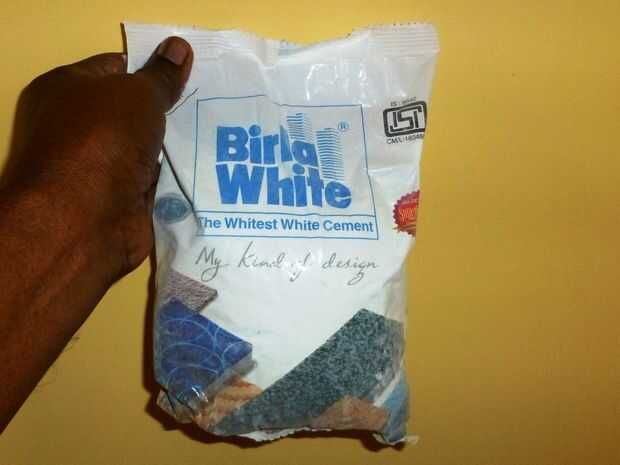 • Medir una parte de cemento blanco y dos partes de arena tamizada.