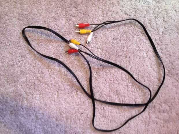 Necesita (tapa al fondo) â ¢ 1 RCA Y cable â ¢ 1 doble echó a un lado AV cable â ¢ 1 Audio jack adaptador â ¢ (por supuesto) un teléfono con una salida de audio Ex: iphone, ipod, ipad, android tab, teléfono android, etc.... â ¢ televisor con entradas de AV