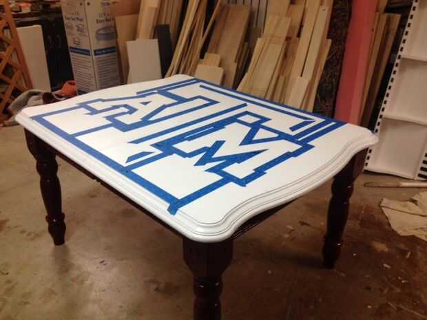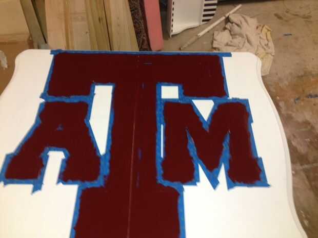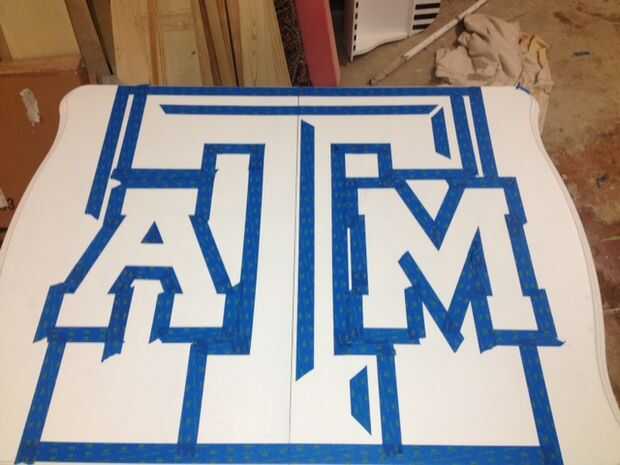 Siguiendo las líneas de logotipo Aplique cinta azul perfectamente sin arrugas. Correr el dedo por el borde. Si hay brechas pintura encontrará su camino y pasarán para siempre haciendo tacto para arriba. Asegúrese de que se describen todas las letras. Esto es un poco tedioso pero al final un ahorro de tiempo.