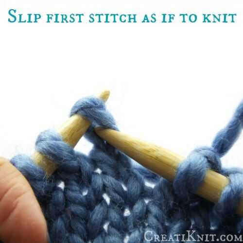 Paso 1: Deslice la primera puntada en la aguja izquierda para tejer hacia la aguja derecha