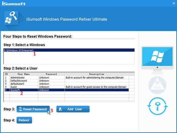 Paso 3: Reiniciar Windows 10 local admin contraseña