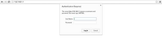 Ahora, simplemente asegurándose de que su conexión sólo activa es el router, vaya a cualquier navegador de internet y escriba la dirección IP en la barra de búsqueda. Debe subir a una página similar a lo que se muestra arriba. El inicio de sesión credenciales restablecer junto con todo lo demás, por lo que será volver al predeterminado. Estos también pueden ser diferentes para cada marca. Por ejemplo, Linksys no utiliza ningún nombre de usuario, solo "admin" en el campo de contraseña y Netgear utiliza "admin" para el nombre de usuario y "password" la contraseña. Si ninguna de estas funciona, tendrás que buscar en Internet o impresa en tu router en algún sitio.