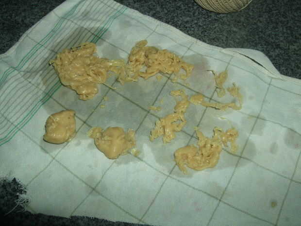 En algún momento - para decidir - todos o la mayor parte de la resina se habrán derretido y deja de venir a la superficie. Puede tomar en este momento la olla del fuego y colóquelo a un lado para refrescarse. Sacar el último de la resina de la taza de agua fría y, si son como yo y no quiero a wase nada, vierta el agua por un colador fino. Probablemente será no suelo lo, pero puede utilizar un filtro (café) en lugar de otro. Tardará más en pasar, sin embargo.