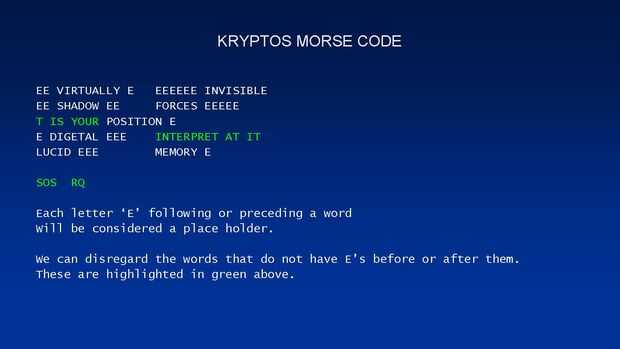 La pieza final del rompecabezas Kryptos.Paso 1: Encontrar un VectorMisma técnica usada en mal DIGETAL - espacio Extra después de la E (punto), espacio para otro punto: (punto punto) = IEn la parte 3, paso 5 de esta serie, deconstruye la letra ' n ' e