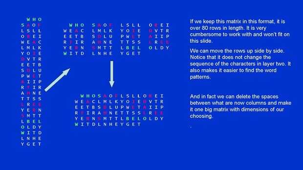 Cómo encontrar la puerta que se abre la llave de K4.Paso 1: K2 - el portal de KryptosTenemos que hacer algunas modificaciones al formato,Paso 2: K2 de la matriz OriginalPaso 3: K2 y K4Paso 4: Pattern MatchingParte 5 nos dio un raro buscando pista per
