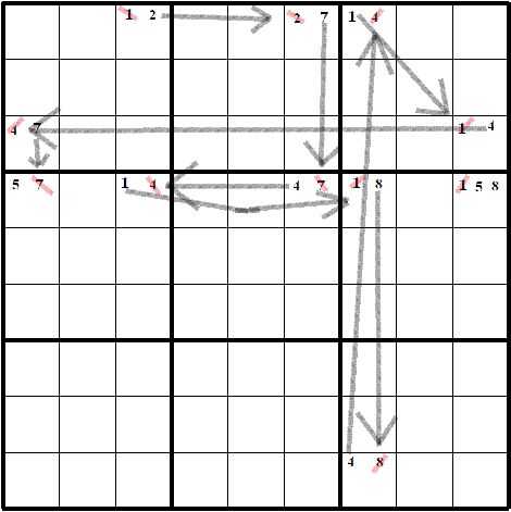 La lógica de ser, hay sólo dos posibilidades en la célula de partida, y si ambos llevan al mismo resultado en otro, entonces ese otro celular no tiene opción sino para ser ese número.