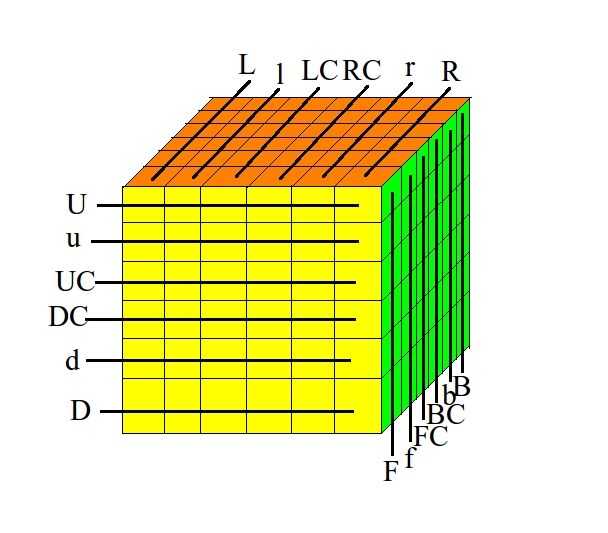 Antes de comenzar le debe saber lo que significan los movimientos. Si hay sólo las letras gírelo hacia la derecha, si existe la letra y ' gire hacia la izquierda.