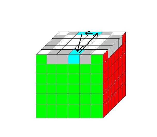 Es el momento de swapp el centro Edgepieces de la sexta capa. No tienen que inclinarse correctamente, solo intercambiar. El algoritmo para la primera foto es: