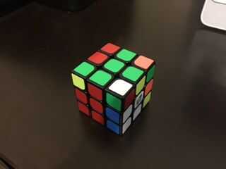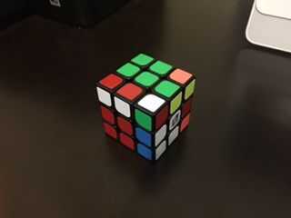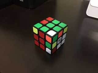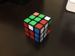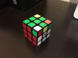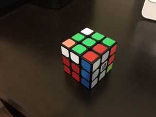 He completado una iteración del algoritmo. Gire la parte superior para realinear las esquinas a sus lugares correctos en el cubo en la última imagen. Observe el patrón de la capa superior, solo tiene una esquina dio vuelta la manera correcta; sin embargo, ha sido torcida la esquina verde, blanco y rojo (junto con las otras esquinas). De este patrón, una más iteración del algoritmo para resolver este paso.