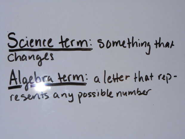algo que cambia. En álgebra, la palabra "variable" tiene una definición un poco diferente. Una variable en álgebra es una letra que representa cualquier número. El número que representa a una variable cambia con cada problema.