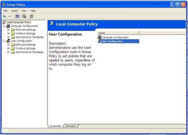 En la Directiva de equipo local, seleccione la "configuración de usuario" haciendo doble clic en él. Se abrirá la configuración del usuario.