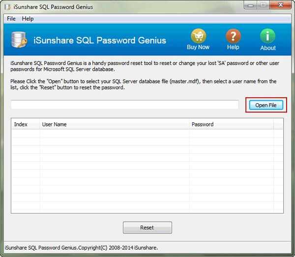 Paso 1: Descargar, instalar y ejecutar la versión completa de SQL contraseña genio iSunshare en equipo.