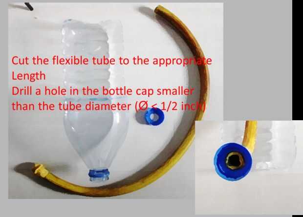 -Taladre un agujero en la tapa de la botella con la taladradora ligeramente más pequeña que el diámetro de la tubería outter