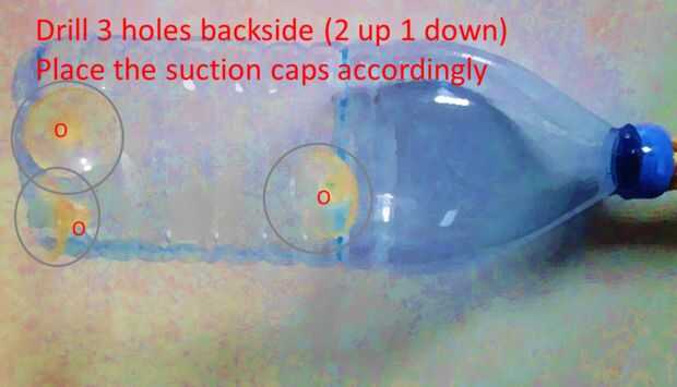 Así que una solución es construir a un espaciador de otra botella del animal doméstico, este espaciador llevaría las ventosas y llevará el orinal.