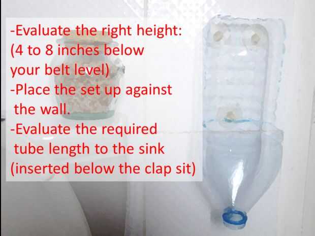 -Ubicar el lugar adecuado para el orinal y estimar la altura óptima: es unas pocas pulgadas por debajo de su nivel de cinturón.