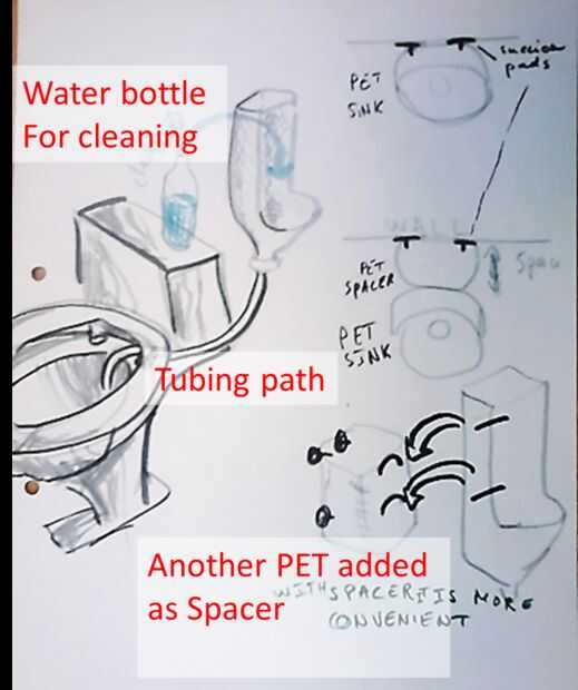 la pared - ventosas - espaciador de una primera botella forma cuadrada--orinal realizada una segunda botella forma cuadrada