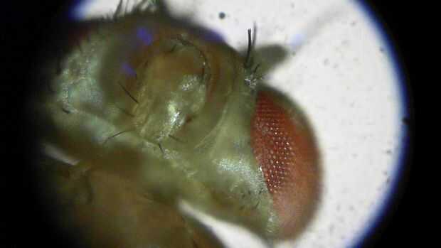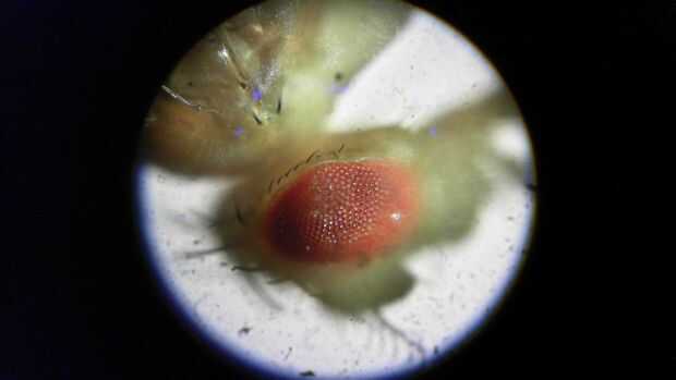 Con estas grandes muestras en un microscopio de luz como este, tengo a la luz de la parte superior como la inferior. Además, el plano de enfoque en este microscopio es lo bastante estrecho como para que usted notará que estos errores no están en foco; sólo "rodajas" de ellos pueden ser enfocada en cualquier momento.
