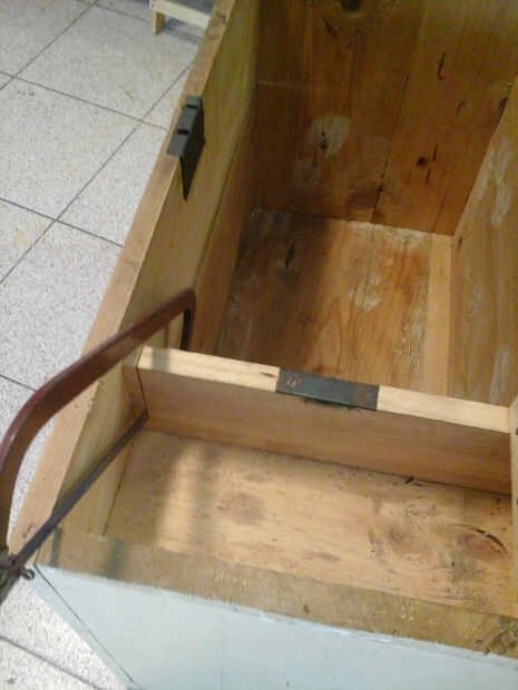 El pecho tenía un cajón secreto interno con la cerradura, pero reducía la capacidad de almacenamiento y probablemente fue agregado después de que el pecho fue hecho a mano. Así que decidí quitarlo
