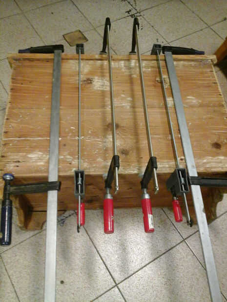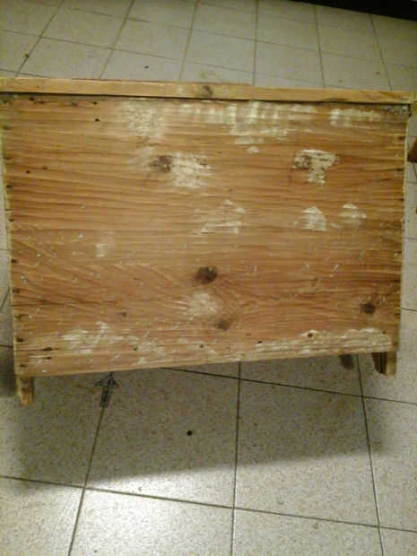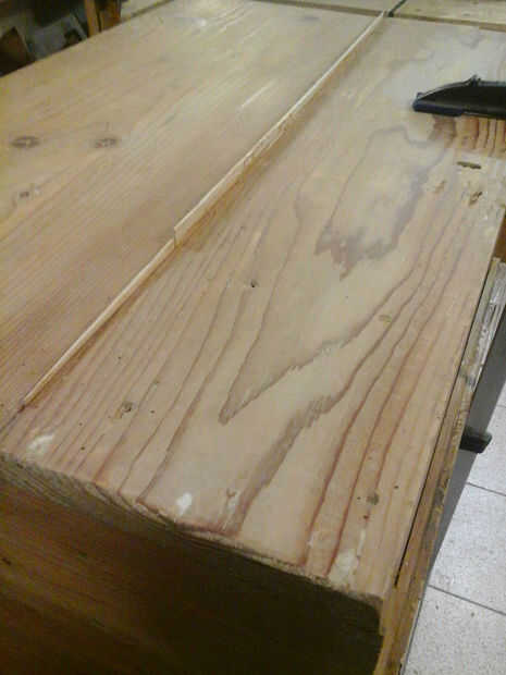 La grieta frontal fue reparada con un fino relleno de madera, pegada y luego cepillada