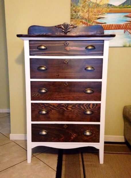Después de la tinción hicimos 3 capas de poliuretano sobre la madera teñida y había rematado con unos tiradores de acero agradable.