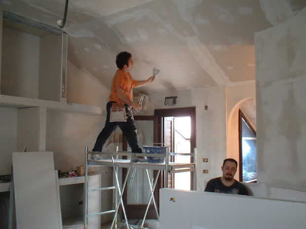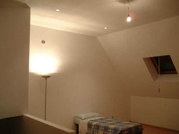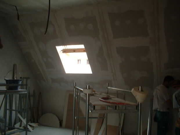 Fue el primer paso para aislar todo el asunto. Para ahorrar energía de calefacción, bajamos abajo del techo. También agregamos una capa de aislamiento en el piso. Puesto que es la habitación más caliente de la casa, ayuda a enfriar los otros suelos en verano.