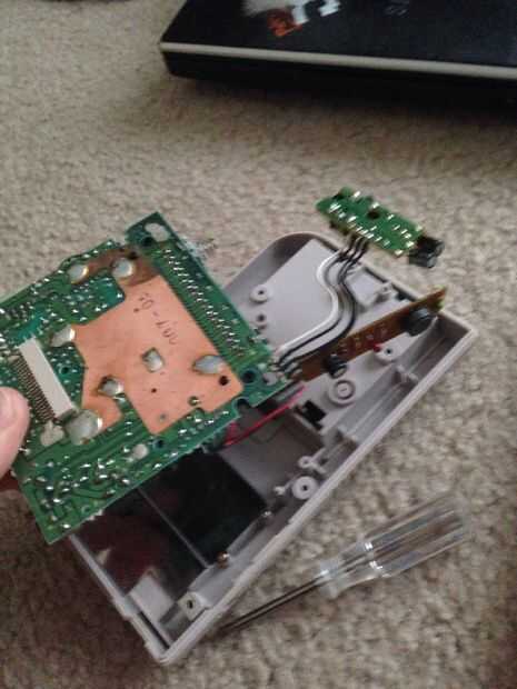 Una vez que los tornillos de deshecho, quiere desmontar la casa. Mientras estás haciendo esto, ten cuidado porque hay un cable de pantalla conectado a cada lado. Usted puede quitar fácilmente el cable de la pantalla, sólo tenga cuidado o de lo contrario pueden rasgar. Después de esto, desarmarla es bastante explica por sí mismo. Todo lo que tienes que hacer es quitar todos los tornillos que se pueden ver dentro de la caja. Una vez hecho esto, desea quitar placas de circuito impreso de cada lado. Mover a una zona segura, pero no la alfombra ya que esto puede hacer la electricidad estática y freír a tu Gameboy!