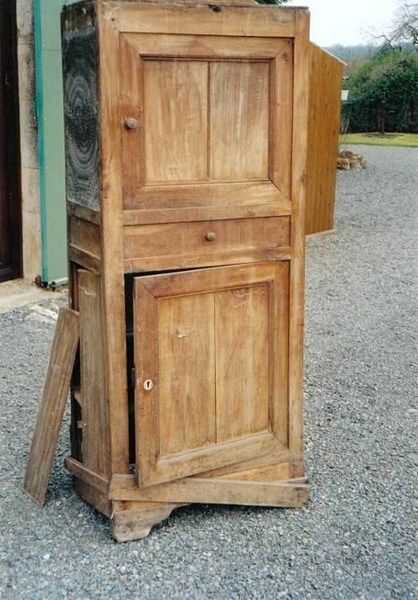 A primera vista podemos ver que el pedazo de muebles está muy sucio, por dentro y por fuera. La parte inferior del gabinete debe ser reemplazado. Paneles metálicos están oxidados y tendrán que ser trabajado encendido. También la cornisa tiene disapeared.