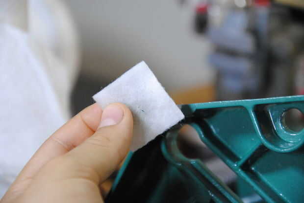 Primero, limpiar la parte inferior de las base apagado con un cojín del Alcohol y luego 4 pies de goma en la base. Super sencillo!