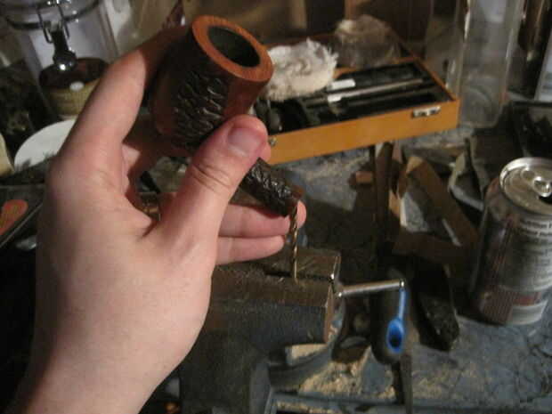 Ahora debe ser muy cuidadoso aquí porque usted no quiere poner un orificio innecesario en su tubo! Esto es muy fácil con las pipas rectas pero bents requieren un poco más de atención.