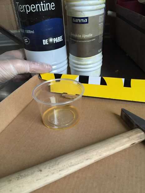 Utilizando el terpentine y aceite hervido de linaza en una proporción de 1 a 1 que una pequeña cantidad de mezcla de th (no necesita ser mucho)
