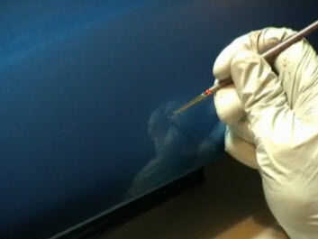 Limpiar la zona de reparación, a continuación, aplique la pintura. "Conectar los puntos" de izquierda a derecha, mantener una mano firme para evitar crear trazos de pincel feo.