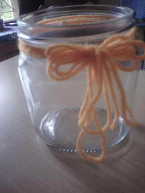 insumos necesarios:Tarro de cristal alto: Masón, espaguetis salsa etc.Camisa de manga larga o suéterTela extra de bajo color (si necesario)Pistola de pegamento calientePalillos del pegamentoTijerasAgujaHilo de roscaAdornosPaso 1: Elegir tus frascos y
