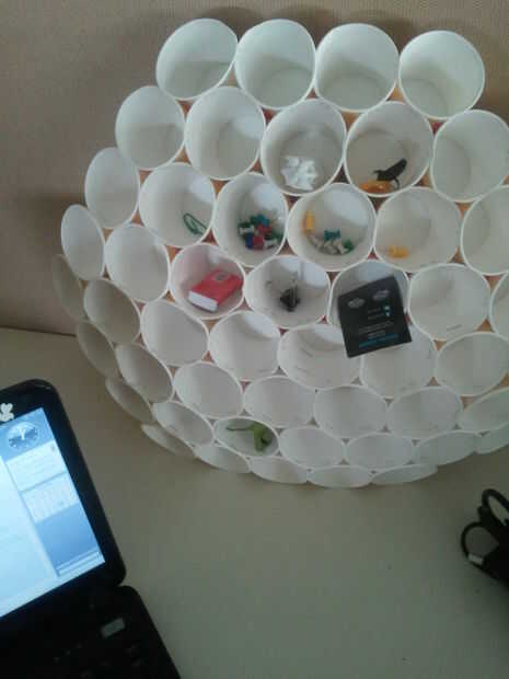 Seguir agregando tantas copas más que quieras y listo! Tu organizador de escritorio poco lindo está listo! Que los interiores de color o cubrirlas con papel interesante.
