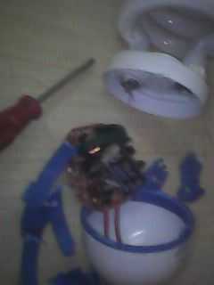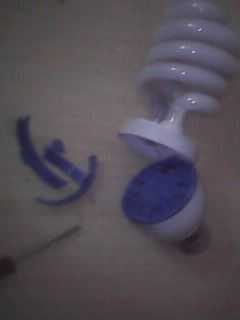 Probar a abrir el muerto lámpara fluorescente compacta con el destornillador y mover el tubo de vidrio y tiro lo que no necesitamos más y quitar esta pieza de plástico o rotura y usted verá el PCB y la electrónica gratis.