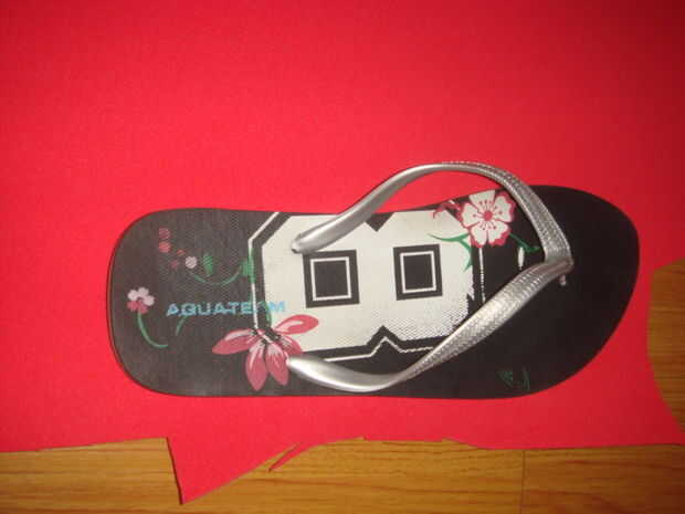 Para este paso he utilizado un tanga para medir el tamaño que yo quería para mis zapatillas. He utilizado una hoja de espuma porque puedo usar alfileres para cortar luego la toalla.