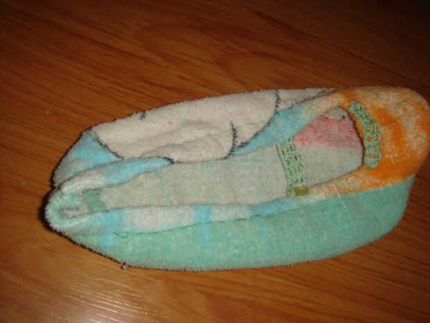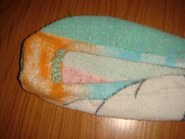 ¿Cómo reutilizar una toalla en pantuflas grandes (6 / 7 paso)