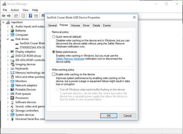 Por defecto, selecciona optimizar para la opción de eliminación rápida,