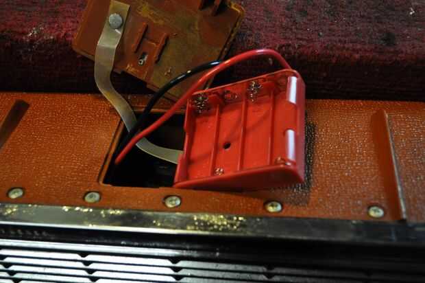 una célula 4 portapilas AA encaja perfectamente dentro del compartimento de la batería original. el mod solo necesitado fue sacar los cables del paquete de batería en el compartimento de la batería vieja y hacerlos lo suficientemente largo para que el paquete de AA puede ser pescado hacia fuera cuando necesitan reemplazar. usted necesita para pescar los cables por los agujeros en el paquete anterior, poner la tapa trasera de la radio y finalmente soldar el soporte de AA a los conductores que sólo funcionó. Asegúrese y dejar suficiente longitud para que la tapa se puede sacar si es necesario.