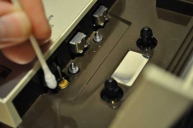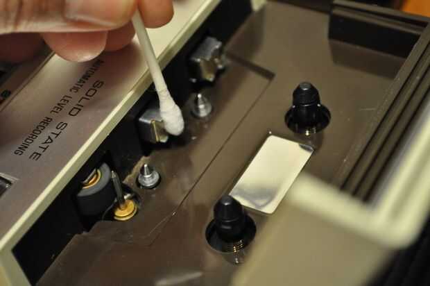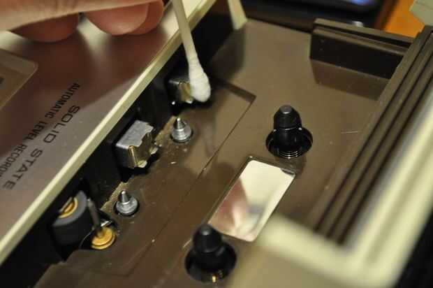 en foto 2 usted ve un q-Tip en el juego / registro de cabeza. Esto es lo que "Lee" la cinta para la reproducción y pone su señal en la cinta al grabar.