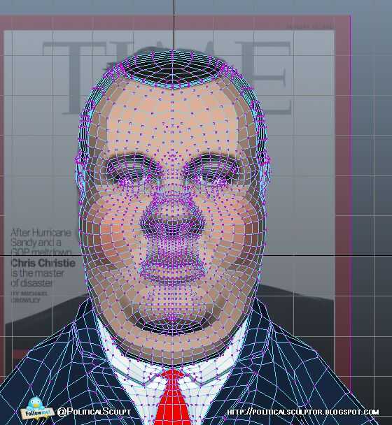 No hice mucho dibujo en esta figura porque ya tenía la imagen mental en mi cabeza... Así que tuve que hacer cara de Chris Christie bien... encontré como 20 fotos de referencia y comenzó a modelar...