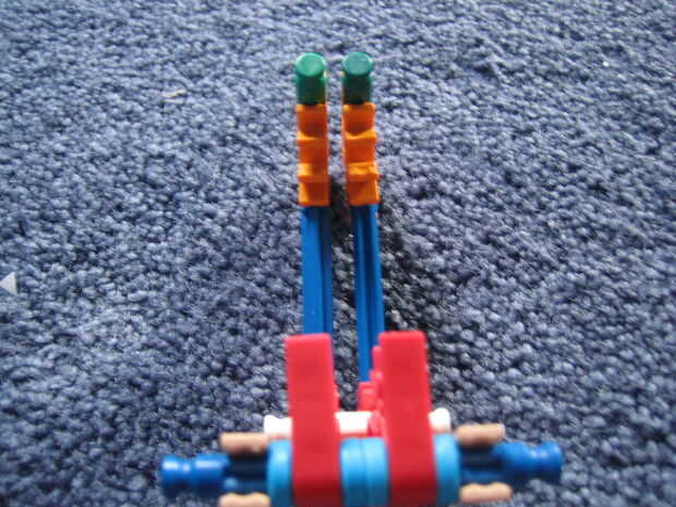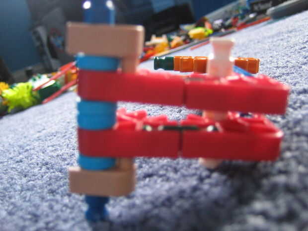 este francotirador dispara varillas gris con rojo conectores Unidos. It´s un francotirador muy potente. sus brotes a través de una caja de zapatos. habían hecho mi hermano y yo.